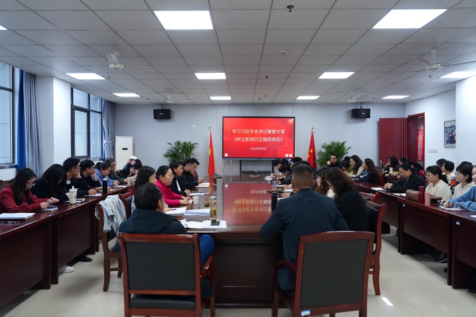 2026年4月8日下午,太阳集团tyc151cc举行全体教职工政治理论学习会。学院党委书记余建杰领学习近平总书记重要...