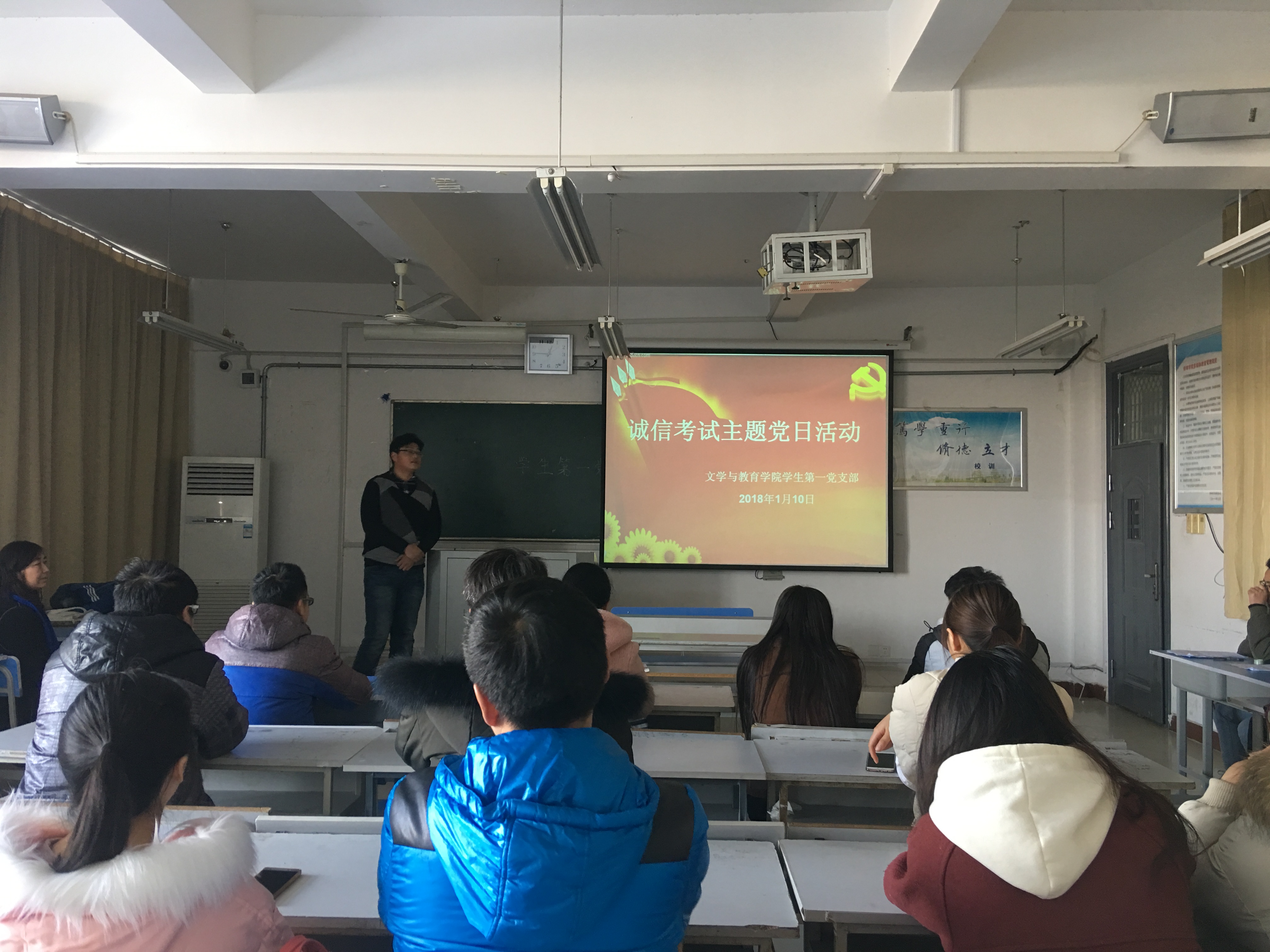 期末临近,为深化“两学一做”学习教育常态化制度化,引导广大学生认真复习迎考,1月10日中午,太阳集团tyc151cc学生第一党支部在B318开展了诚信考试主题党日活动。此次活动由支部组织委员刘鑫主持,支部成员悉数参加。