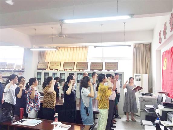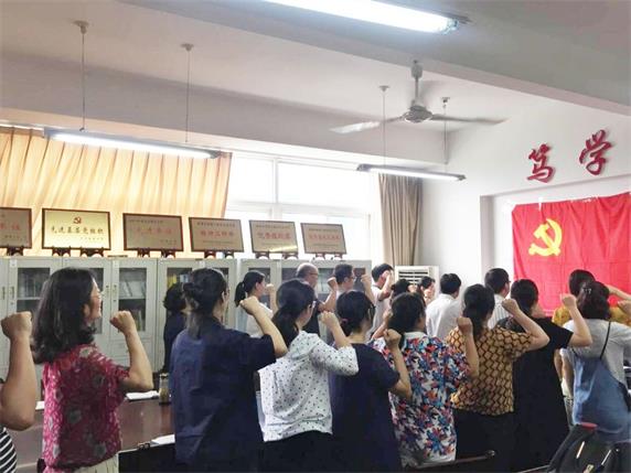 学习结束后,教工党支部书记毛星懿带领全体党员重温入党誓词,号召大家在今后的工作中时刻做到不忘初心、牢记使命,用实际行动去实现高质发展,创造学校更加美好的未来。