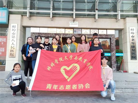 尊老为德,敬老为善,爱老为美,助老为乐。为了培养当代大学生的社会实践能力和社会公德意识,关注老年群体,为他们的精神世界献上一份关怀,10月27日,文教院青协前往蚌埠市第八人民医院老年康复中心,组织并开展了“相亲相爱一家人”养老院特别活动。