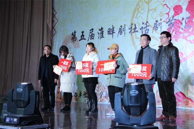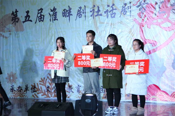 晚会进行到一半,便是本届淮畔剧社剧本创作大赛获奖剧本的颁奖环节。学院党政领导和老师分别为获得一等奖的4名同学颁发奖状及1000元奖金,为获得二等奖的5名同学颁发奖状及800元奖金,为获得三等奖的10名同学颁发奖状及400元奖金。这既是对同学们才华的肯定,也是对他们继续创作的鼓励。