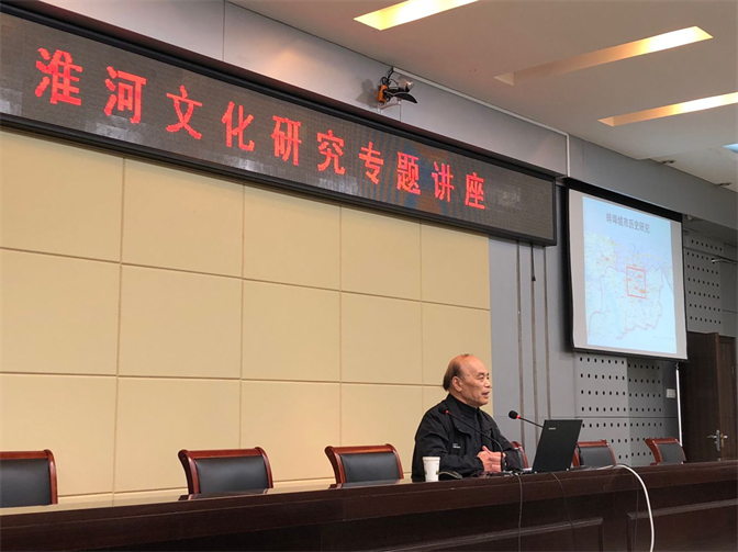 郭学东多年从事蚌埠历史及淮河文化研究,著有《蚌埠城市史话》《蚌埠掌故》《淮河文化概观》《安徽人文•风情淮河》《走读淮河——淮河南北过渡带文化考察》等著作,在学术界具有广泛影响力。讲座开始后,郭学东首先介绍了蚌埠地域空间的演变、蚌埠开埠的历史背景;接着讲解了安徽城市中心的转移过程以及蚌埠城市性质的转变,介绍了蚌埠曾是经济强市的辉煌历史,并对蚌埠现代化建设提出了建议。最后,郭学东从语言、艺术、服饰、饮食、民风等方面介绍了蚌埠城市文化的特色,同时请广大师生就“如何培育蚌埠城市文化”进行了思考。