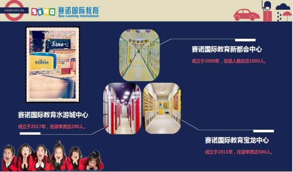 赛诺国际教育成立于2009318日。目前拥有蚌埠市宝龙校区、蚌埠水游城校区、合肥市包河区新都会校区、百花井校区、蜀山区颐和校区。中华人民共和国民办学校办学许可证:134011172011251。