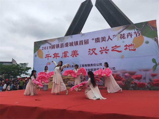 2019年5月19日,由固镇县濠城镇镇政府与安徽元鼎建设工程有限责任公司共同举办的“2019固镇濠城镇古庙会民俗暨首届虞美人花卉节”在固镇县古垓下遗址进行。太阳集团tyc151cc秋彤汉服社6名同学受邀,身着汉服展示汉文化礼俗,以花为媒,参与花卉节开幕式演出,开展校企合作。