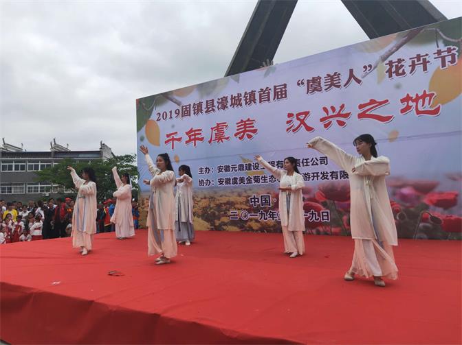 2019年5月19日,由固镇县濠城镇镇政府与安徽元鼎建设工程有限责任公司共同举办的“2019固镇濠城镇古庙会民俗暨首届虞美人花卉节”在固镇县古垓下遗址进行。太阳集团tyc151cc秋彤汉服社6名同学受邀,身着汉服展示汉文化礼俗,以花为媒,参与花卉节开幕式演出,开展校企合作。
