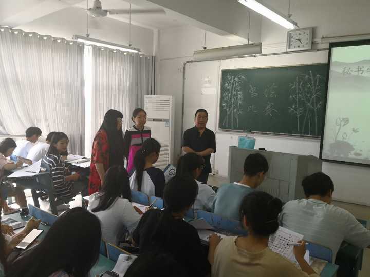 为提高秘书班同学们的专业素养,增强专业技能的训练,继承中华传统优秀文化。2019年5月29日下午2:30分,2018级秘书学专业于A413教室举办了“秘书学专业职业技能大赛之书法比赛”活动。活动期间,学校督导田万惠老师、秘书学专业负责人洪何苗老师进行现场指导。