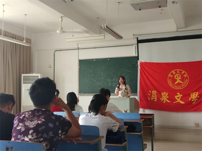 5月31日中午12时30分,涓泉文学社在A211隆重举行了社团换届大会。涓泉文学社指导老师洪何苗及上一届会长王飞和部分社团成员参与了这次换届大会。
