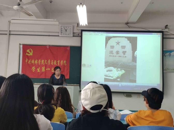 在重温入党誓词后,潘兰香以“红色基因红色记忆”为主题对三个支部的党员讲党课,她将自己参观金寨革命老区的珍贵图片与参会党员分享,通过大量的文献资料、珍贵图片和实物资料,深入学习党的历史,追忆革命烈士生平事迹,感悟革命情怀,铭记中国共产党人和革命老区人民为民族独立人民解放而英勇奋斗的光辉历程。