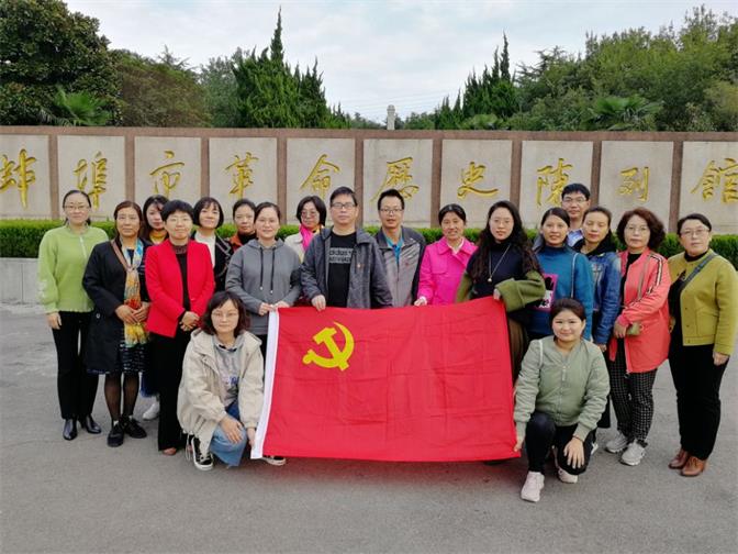 蚌埠烈士陵园位于曹山北坡,陵园由烈士纪念碑、瞻仰步道、陈列馆三大建筑组成。在烈士纪念碑前,全体党员默哀,三鞠躬致敬,深切表达了对革命先烈的崇敬及悼念。在鲜红的党旗下,教工支部组织委员张琳琳带领全体党员面向烈士碑,进行了庄严的宣誓,重温了入党誓词,引领党员不忘入党初心,牢记党员使命。在凭吊烈士纪念碑后,大家参观了陈列展馆,馆内陈列着辛亥革命以来的各种图片、实物及各种资料。通过了解革命烈士英勇斗争的光辉历史,重温革命斗争的峥嵘岁月,党员教师们近距离感受到革命烈士为了人民幸福生活、为了党的崇高事业艰苦奋斗、不惧牺牲的高尚品格和坚强信念。