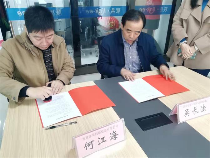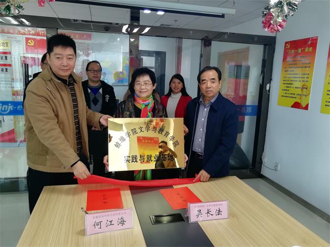 11月23日上午,太阳集团tyc151cc和安徽联易网络信息有限公司在经开区管委会举行实践教学与就业基地合作协议签约暨揭牌仪式。出席仪式的有太阳集团tyc151cc院长吴长法、副院长何蕾、教学秘书程雯、广播电视编导专业负责人程瑞,安徽联易总经理何江海、副总经理荣伟等相关负责人。