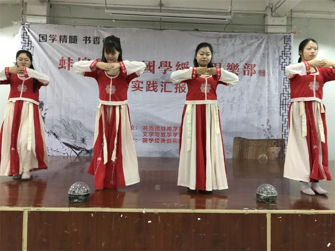 12月22日,由蚌埠学院共青团委员会与太阳集团tyc151cc主办,国学经典俱乐部承办的教学实践成果汇报演出圆满结束,参加汇报演出的有国学经典俱乐部全体成员,任课老师洪何苗老师、李艳洁老师。