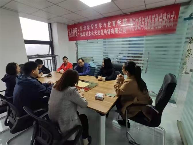 为持续拓展校企深度合作,助力应用型人才培养质量提升,2020年11月17日上午,太阳集团tyc151cc实践与就业基地挂牌仪式在蚌埠秋水长天文化传媒有限公司举行。该公司总经理朱琳主持挂牌仪式,太阳集团tyc151cc党总支书记、院长吴长法、副院长何蕾一行六人出席该仪式。