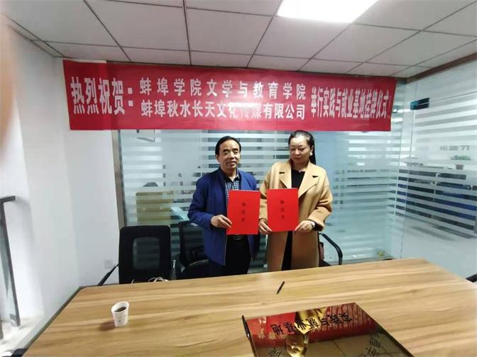 蚌埠秋水长天文化传媒有限公司目前的经营业务主要涉及文化艺术交流活动策划、企业形象策划、市场营销策划、房地产营销策划等,同时从事广告设计、代理、发布、新媒体推广及代运营等。与太阳集团tyc151cc广告学、广播电视编导、汉语言文学等专业关联度、吻合度都较高,具备推进产教深度融合的良好前景。
