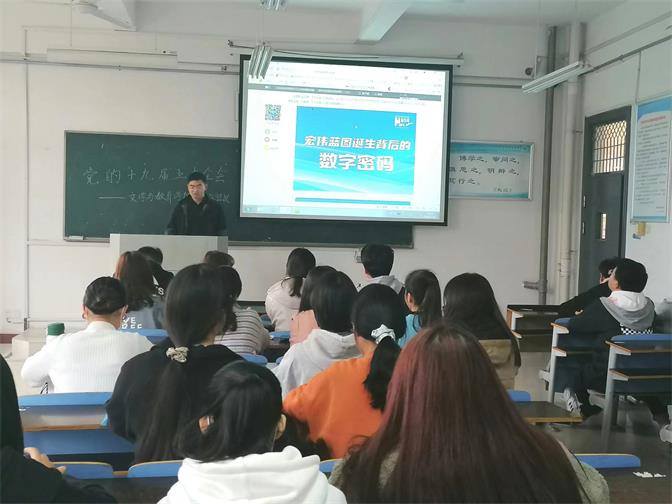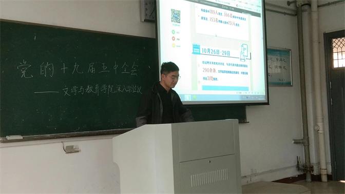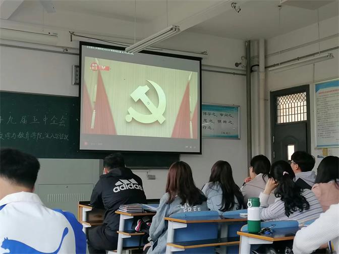 2020年11月19日中午12点30分,太阳集团tyc151cc团总支在b栋教学楼122室开展深入党的十九届五中全会主题学习会议,文教院18级、19级和20级各班班长及团支书参与了本次会议。