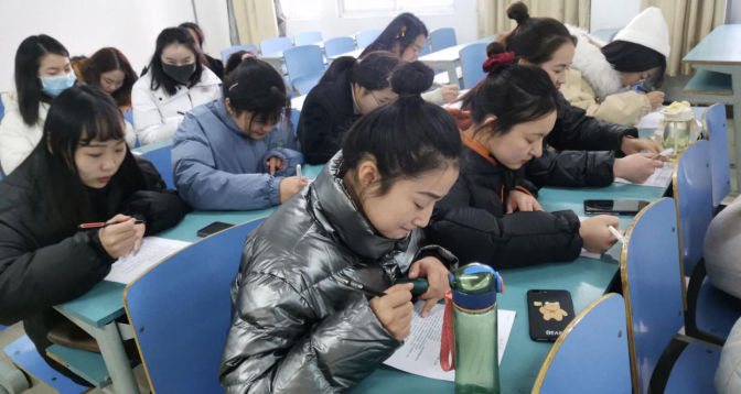 比赛于中午12:30正式开始,在支部书记董琬如老师的主持下,参赛选手按照编号依次入座。12:40由主持人分发试卷,参赛选手开始答题,答题时间为小时。此次活动极大地调动了选手们的积极性,选手们认真答题,争分夺秒。比赛共分为两个部分,第一部分为单项选择题,题目内容是关于十九届五中全会精神的基本知识;竞赛第二部分为多项选择题,难度加大。本次比赛共评选出一等奖3名,分别是朱宝悦、石龙燕、杜燕婷同学;二等奖2名,分别是陈静和孙冰冉同学;三等奖4名,分别是廖婷婷、胡雨竹、苏雪儿和王晓露同学。