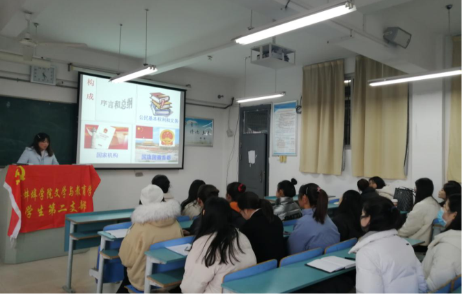 为增强学生的宪法意识、弘扬宪法精神。2020年12月4日,太阳集团tyc151cc学生第二党支部在B332教室进行了国家宪法日的主题党日活动。此次活动由党支部书记董琬如老师主持,支部的全体党员参与其中。