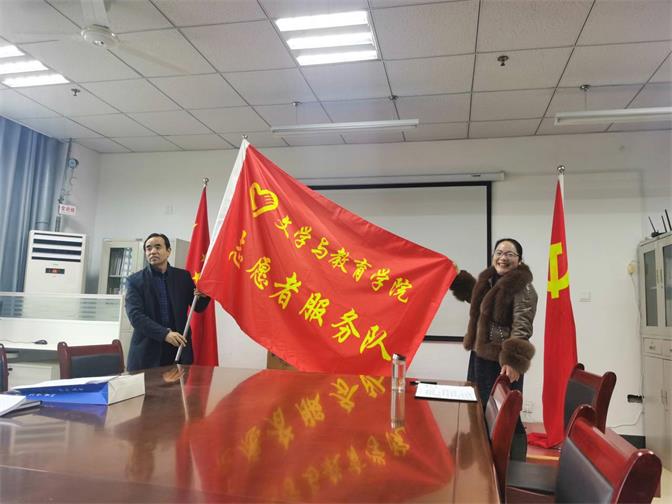 本次启动仪式是学院贯彻落实“庆祝‘12·5’奉献新时代”主题志愿服务活动的重要部分。在启动仪式上,全体教师认真学习国务院《志愿服务条例》《安徽省志愿服务条例》《蚌埠市文明行为促进条例》等“三个条例”,并进行了集体签名。最后,吴长法将文教学院志愿服务队队旗亲手授予学院工会主席王葆慧。