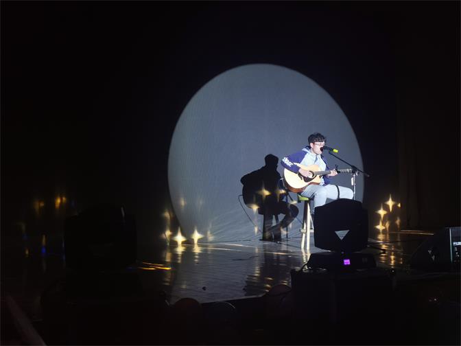 下午6点30分,在工作人员的带领下,同学们严格遵照疫情防控工作要求,佩戴口罩有序进场,并间隔入座。随着七点整的钟声敲响,舞台上声光并起,随着两位拉丁舞者的热舞,演出的序幕正式拉开。