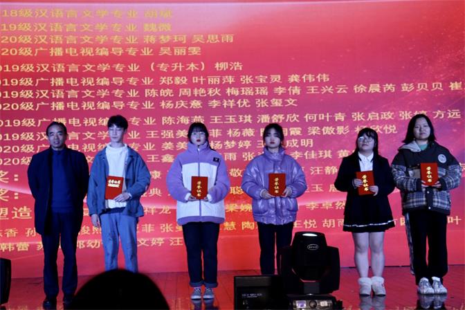 晚会期间,学院党政领导和老师们分别为最佳创意奖、最佳创作奖、最佳人物塑造奖、优秀奖以及一二三等奖获奖同学颁发荣誉证书,并对他们的成绩表示由衷的祝贺。这既是对同学们才华的肯定,也是对他们继续创作的鼓励。