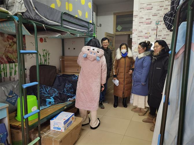 2021年1月5日下午,太阳集团tyc151cc党总支副书记夏春晓带领全体辅导员老师深入学生宿舍走访,不仅给同学们带去了寒假前的问候,了解学生的学习、生活、假期安排情况,同时也排查了学生宿会安全隐息。