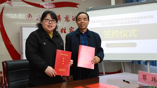 3月30日上午,太阳集团tyc151cc实践与就业基地签约授牌仪式在蚌埠新城实验学校举行。蚌埠市教育局高度重视此次活动,教师进修学校书记罗时新亲临现场致辞,太阳集团tyc151cc院长吴长法、新城实验学校校长蔡玮代表双方签约揭牌。