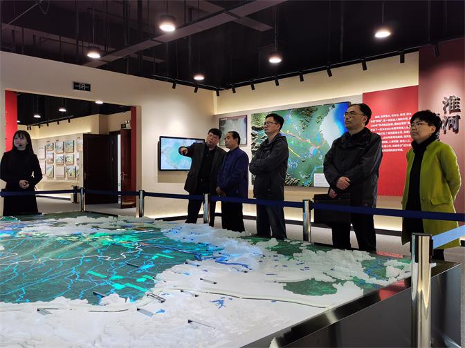 吴长法一行首先参观了治淮陈列馆。该馆于2010年开馆,展陈了大量珍贵的历史图片、展品、史料,集中展示了淮河的自然历史演变、流域文化、新中国治淮历程及取得的丰硕成果。