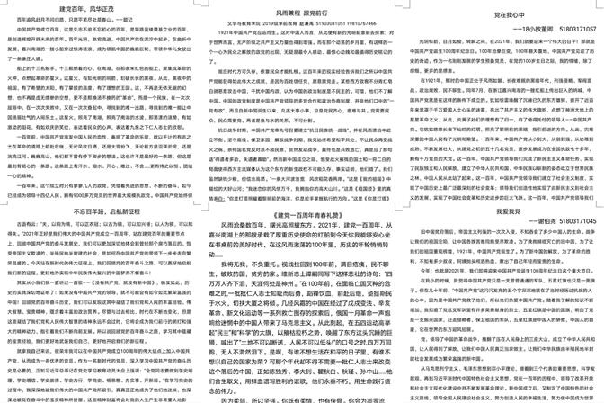 本次征文活动采取线上线下同时报名的方式。同学们积极参加,用自己的文字表达他们自己对党由衷的祝福,一段段铿锵有力的文字、一句句简短朴实的表白,抒发着对中国共产党炽热的爱。经历半个月的作品征集,采取线上评比的方式,最终19级小学教育胡雅琴同学的《建党百年,风华正茂》获得一等奖,18级小学教育张明雪的《星星之火》和19级汉语言文学张燕的《农村之焕然一新》获得二等奖,19级秘书学黄荟婷的《悠悠百年史,沥沥红船心》、19级学前教育赵谦禹的《风雨兼程,跟党前行》和19级汉语言文学陈皖的《我的爷爷》获得三等奖。