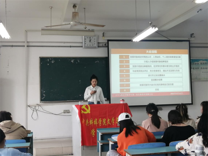 大会开始,由发展对象各自宣读了《入党申请书》。随后分别对自己预备期一年里的思想、学习、生活等各方面情况向党组织做了汇报,阐述对党的认识,入党动机,个人履历及家庭情况,并且表达了入党的决心。接着,介绍人介绍发展对象培养情况。支部组织委员介绍发展对象的政治审查情况、征求党内外群众意见和公示情况。支部正式党员在充分讨论和发表意见后,进行无记名投票。