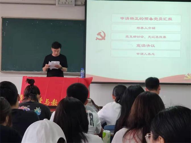 2021年6月10日,太阳集团tyc151cc学生第一、二、三党支部在B楼教室分别召开党员转正大会,讨论关于李艳、何青青、叶文君等16位预备党员申请转为正式党员的事宜。大会由各党支部书记主持,出席数符合要求。
