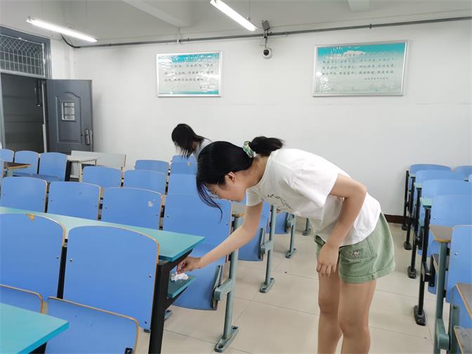 支部成员们备齐清扫工具,积极走向了各个教室。过道、抽屉、桌面、讲台、黑板等等,一处不落的清扫。同学们不放过任何一个角落,不轻视任何一个垃圾,确保考场的干净整洁。学生的生活是充实而忙碌的,给同学们提供一个干净整洁的学习环境,就是给各位同学筑起一道通向成功的桥梁,打开了一把防护伞。