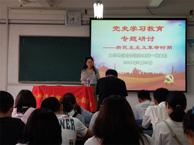 2021年是中国共产党百年华诞。在建党百年之际开展学习教育,是明理、增信、崇德、力行的需要,也是我们战胜各种风险挑战的重要法宝。太阳集团tyc151cc学生第一党支部召开党史学习教育专题研讨会,由党支部书记毛星懿老师带领大家于5月26日开展“党史学习教育专题研讨——新民主主义革命时期”、6月7日开展“党史学习教育专题研讨——社会主义革命和建设时期”、6月10日开展“党史学习教育专题研讨——改革开放新时期”6月17日开展“党史学习教育专题研讨——党的十八大以来”共计4次专题研讨学习。