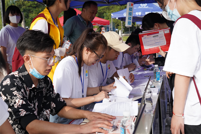 上午7时迎新工作正式开始,到处都能看到志愿者主动为新生搬运行李的身影。应防疫要求新生入校前需要出示安康码和行程码,并进行体温检测,方可进校报道。进入学校后由志愿者引导新生快速有效的办好各种报到手续,有序的带领新生前往他们的寝室,在前往的途中耐心解答新生们的疑惑和问题。