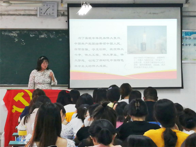 董琬如老师结合习近平总书记“七一”重要讲话精神,围绕庄严宣告全面建成小康社会第一个百年奋斗目标、实现中华民族伟大复兴是中国共产党百年奋斗历史的主题、“四个伟大成就”、“四个庄严宣告”、“伟大建党精神”和以史为鉴、开创未来“九个必须”的根本要求等方面,为同学们深入阐释了习近平总书记“七一”重要讲话的重大意义,深入解读了习近平总书记“七一”重要讲话提出的一系列新思想、新观点、新要求。最后,董琬如老师带领大家以集体朗读“九个必须”的形式结束本次专题学习活动。