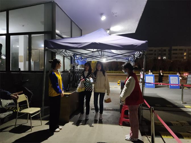 本次活动时间为10月22日、23日和24日的每晚17:00—20:00,活动的主要内容是在后勤部门的门卫处检查学生的出校报备情况,协助保安人员做好校园防疫工作。支部成员共分为三组,每组10人,采用轮流值班形式进行志愿服务。活动期间,成员们按照防疫要求佩戴口罩,对出入校门的同学们的钉钉报备情况进行如实的检查。24日,在支部成员们的热情服务和认真努力下,本次活动顺利完成。