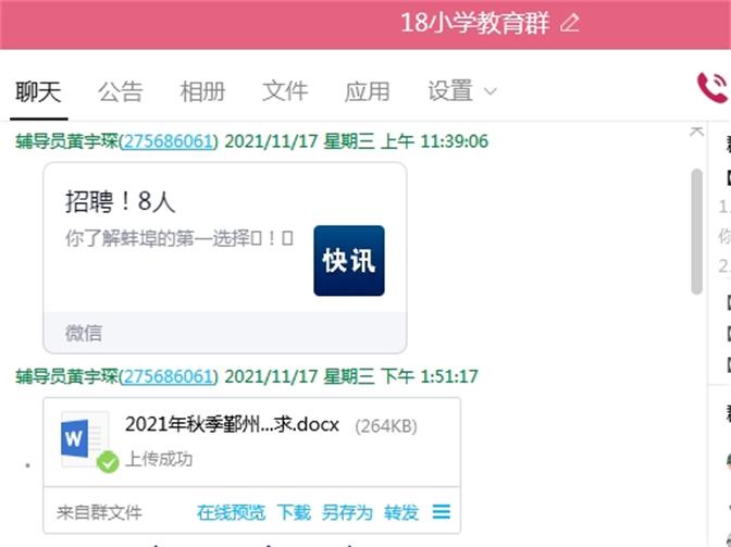 此次参与线上招聘的单位包括新浪安徽、腾讯泛微网络、上海浦江之星幼儿园、浙江温州早培幼教集团、上海九型文化传播有限公司、中国化学工程第十三建设有限公司以及浙江宁波鄞州区及北仑区企业大型线上招聘等。虽不能达到线下面对面的交流,但同学们依然充分准备,纷纷向自己心仪的企业递交精心准备好的简历,通过求职平台积极地与招聘者进行沟通,主动了解用人单位的情况,向招聘者展示了当代大学生应有的风采。招聘者也耐心地向同学们介绍公司的一些规章制度,福利待遇,企业文化,现有产业结构以及组织结构等问题,并对我院学生做出真诚的邀请。