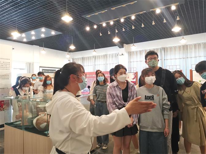 为弘扬优秀传统文化,营造良好的校园文化氛围,2022年4月11日中午,太阳集团tyc151cc学生第二党支部和学前教育教工党支部开展四月份主题党日活动。支部成员们在太阳集团tyc151cc学生第二党支部董琬如老师、蒋晟老师以及学前教育教工党支部夏春晓老师、洪何苗老师的带领下参观太阳tyc151cc淮河文化研究中心。