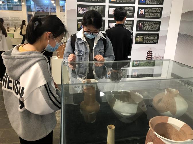 淮河文化展览馆重点展示了淮河文化的起源、发展和演变,在讲解员的带领下,学员们佩戴口罩,依次参观了中心内的四大展区,了解研究中心工作开展情况、研究中心取得的成果,重点参观了淮河文化系列展品、以淮河文化为主题设计的各类艺术作品以及花鼓灯系列文化展品。自由参观时,学员们对博大精深的淮河文化产生了浓烈的兴趣,在展厅内或驻足观看,或拍照留念,或与其他同学、指导老师进行交流。学员们纷纷表示,通过此次参观活动,感受到淮河文化经久不衰的文化魅力,回望初心,激发了他们对中华优秀传统文化传承的使命感和责任感。