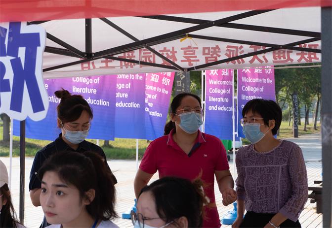 9月11日,为确保新生安全顺利报到,太阳集团tyc151cc工会组织教师志愿者在图书馆前广场开展了迎接2022级新生的服务活动。