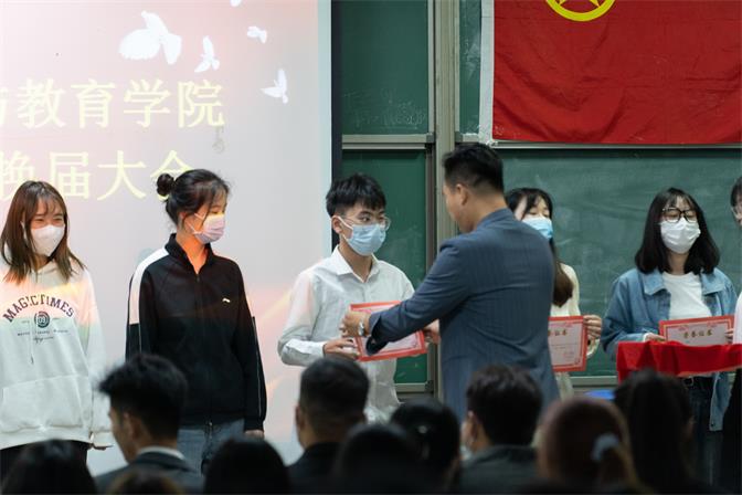 大会在主持人宣读会议流程中拉开了序幕。首先是第十八届主席团成员代表上台发言,总结过去三年的工作,用自身的经验,鼓励新一任的学生会干部,并对他们表达了期望。接着,孙青传为第十八届团总支学生会主席团成员、部长级成员以及干事依次颁发聘书,为优秀部长、优秀干事分别颁发荣誉证书,而后,优秀代表向新成员分享了他们的工作经验。随后,孙青传带领全体学生会成员回顾了一年来第十八届团总支学生会取得的优异成绩和各项活动中记忆深刻的点滴,并对他们的辛勤工作给予了充分的肯定,“聚是一团火,散是满天星”,会议的最后,孙青传对第十八届团总支学生会全体团员表达了真诚的赞赏与祝福。