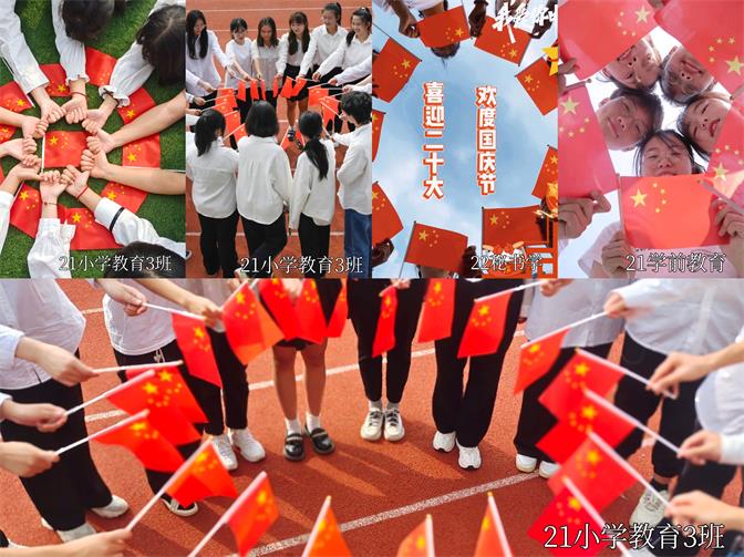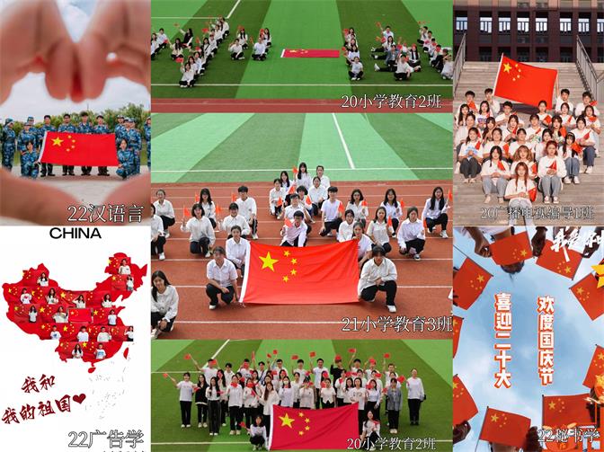 拳拳赤子心,浓浓爱国情。我们生在红旗下,每个人的心里都有一抹永不褪色的红。在参与和红旗合影活动前,各支部集思广益,创意满满,拍摄的一张张影像中,用各自的方式传达着文教院团员们对祖国的热忱,拍摄的每一个镜头都在传递一种声音,每一面国旗都代表一颗中国心,每一张与国旗的合影表达的是对伟大祖国真挚的热爱与祝福,表达的是对祖国山河壮丽,岁月峥嵘;江山不老,祖国常青的美好祝愿。