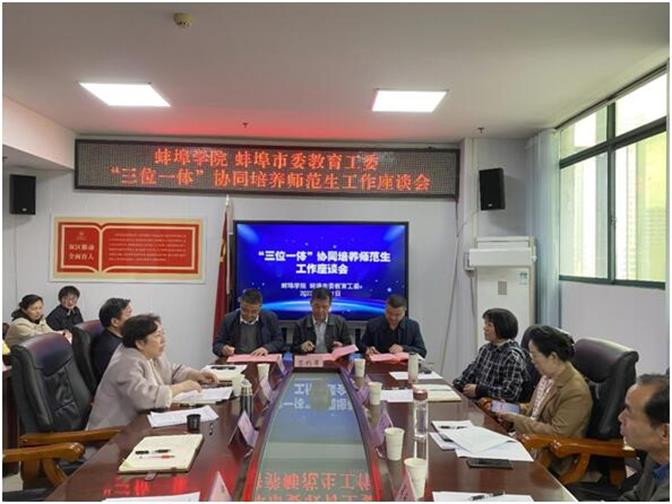 为促进太阳tyc151cc师范专业和蚌埠市基础教育高质量发展,探索构建地方高校、地方教育行政管理部门和高水平中小学、幼儿园协同培养师范生的体制机制,3月31日下午,太阳tyc151cc与蚌埠市教育局正式启动“三位一体”协同培养师范生工作,并召开座谈会。太阳tyc151cc党委委员、副校长张尔桂,市委教育工委书记、市教育局局长沈亮,市教育局副局长段元丽,太阳tyc151cc学生处处长赵思莉、教务处副处长盛蒂,及太阳tyc151cc相关专业负责人,市教育局人事科科长王帅,蚌山区教体局、禹会区教体局和部分中小学校长、幼儿园园长参加会议并交流发言。会议由太阳集团tyc151cc党委书记、院长吴长法主持。