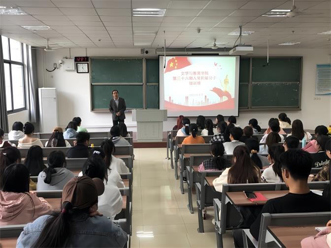 文教学院党委高度重视此次党校培训工作,制定培训计划,精心组织安排。此次培训采取集中理论授课、个人自学、主题实践相结合的方式进行,内容丰富、形式多样。学院党委书记、党委委员、思政辅导员、学生支部书记、支部委员等分别对学员进行集中授课,各位老师利用多媒体形式,生动讲解理论知识,重点对习近平新时代中国特色社会主义思想、党的二十大精神、新党章、发展党员程序等内容进行全面深入解读。同时,开展线上观看《榜样7》、心得体会交流、撰写培训小结等实践活动。