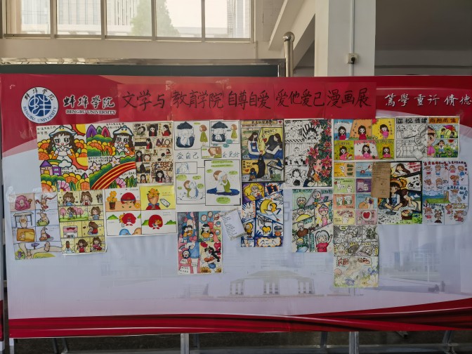 心理漫画大赛是文教学院5·25心理健康教育月系列活动之一,活动以“自尊自爱,爱他爱己”为主题,面向全院学生征稿,活动于2023年5月1日开始至2023年5月10日结束,共征集稿件五十余件。此次活动,同学们用自己手中的画笔,以丰富的想象力和精湛的画技通过漫画的形式来抒发自己的感想。一笔一划都透露着同学们对于“自尊自爱,爱他爱己”主题的独特见解。最终,经过层层筛选,评委打分,评选出获奖作品若干,并在教学楼B楼大厅进行展示。