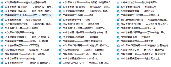 这次征文比赛旨在引导同学们了解和认识诚信,从而进一步强化道德意识和行为规范。经过一个月的征集,全院共征集到50篇征文。同学们纷纷结合自己的亲身经历,分享了一个个让人感动的诚信故事,反映出了如何在诚信的理念下做出正确的选择和决策。经过评委们认真细致的评审,最终评选出一、二、三等奖和优秀奖各若干名。
