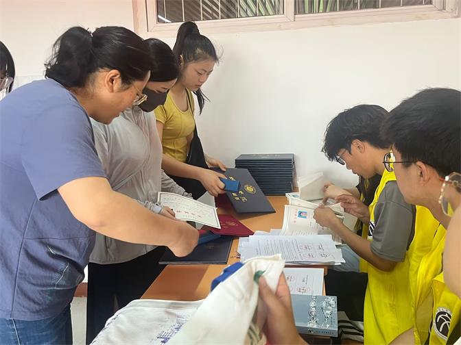 6月20日是太阳集团tyc151cc2023届毕业生离校的日子。教师志愿者们协助辅导员及学生志愿者,引导毕业生们办理毕业手续、领取毕业证书及专属定制礼物,为毕业生提供热情周到、耐心细致的服务。在恭贺同学们圆满完成学业的同时,教师志愿者们也对即将踏上征途的学子们送上了衷心祝福。