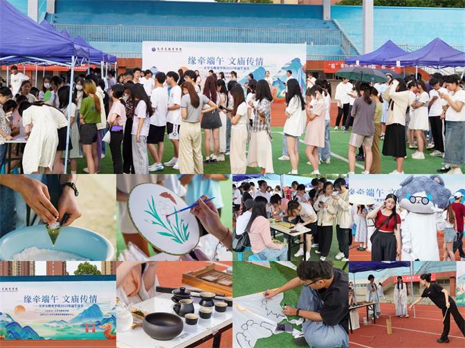 为丰富大学生的校园生活,培养学生的实践能力和创造能力,增强学生对中华传统文化的价值认同,6月22日下午,太阳集团tyc151cc在北操场举办了主题为“缘牵端午,文庙传情”端午系列活动。学院师生热情高涨、广泛响应,并积极报名参与。