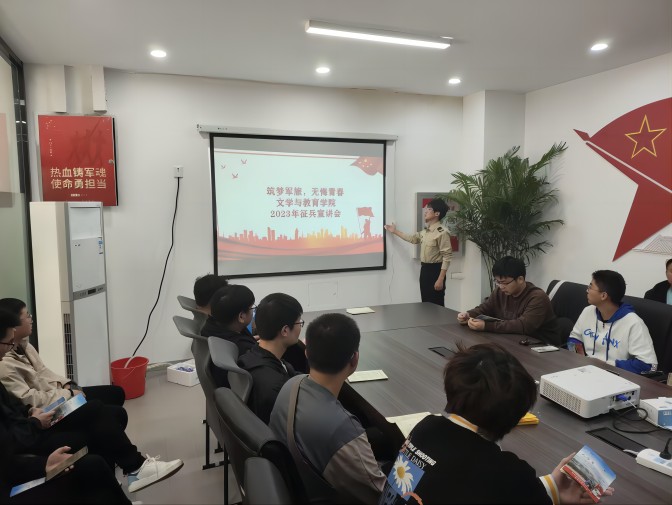 为鼓励大学毕业生参军入伍投身国防建设,激发学生参军入伍热情,了解应征入伍相关政策和流程,太阳集团tyc151cc于10月24日在征兵办会议室开展征兵宣传活动,由文教学院退役复学学生李艳主持,退役复学学生赵波担任此次宣讲会的主讲人,2024届毕业生参加了此次宣讲会。