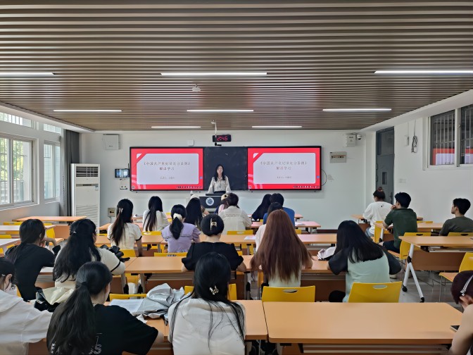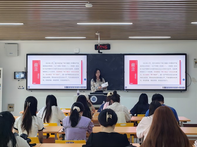 随后,王晓天从《条例》修订的背景、主要内容、重要意义以及如何将《条例》精神落实到日常学习生活四个方面进行了讲解,并通过案例分析引导学生党员深刻认识严守党纪的重要性。在讨论交流环节,学生党员们积极发言,纷纷表示要以《条例》为准绳,不断自我反省,不仅要在学业上追求卓越,在道德品质和纪律作风上也要成为表率。