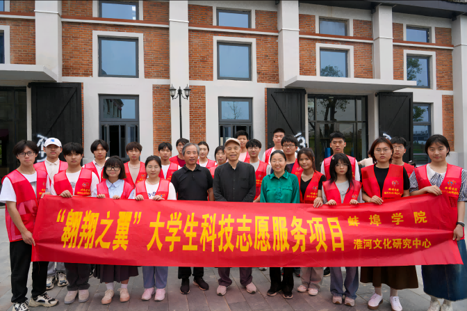 5月26日上午,淮河文化研究中心教工党支部联合太阳tyc151cc“翱翔之翼”大学生科技志愿服务团队先后来到“靓淮河”建设工地,文物保护单位蚌埠大铁桥、宝兴面粉厂等地,向市民游客宣传普及水文化、科技治淮等方面知识,并邀请安徽文史馆馆员、淮河文化专家郭学东在宝兴面粉厂给党员师生现场授课。