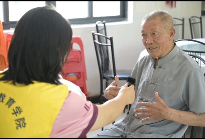 接着,团队成员采访了小岗村“大包干”十八位带头人之一严金昌。他讲述了“大包干”的故事以及小岗村改革开放前后的变化。通过了解当年的故事,团队成员们感受到了老一辈乡村建设者的魄力与智慧。